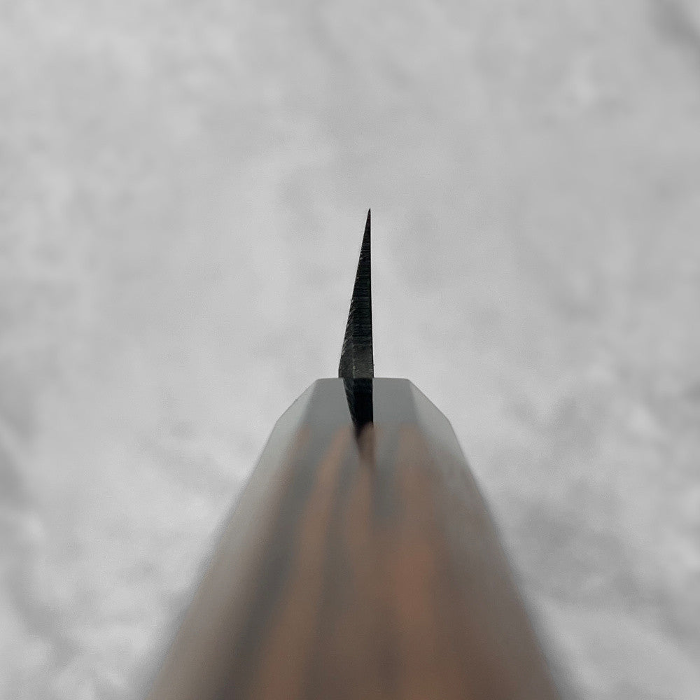 Fitted with an octagonal wenge handle and a buffalo horn ferrule, the knife feels confident and comfortable in hand. As a traditional single bevel blade, it is suitable for right handed users only.