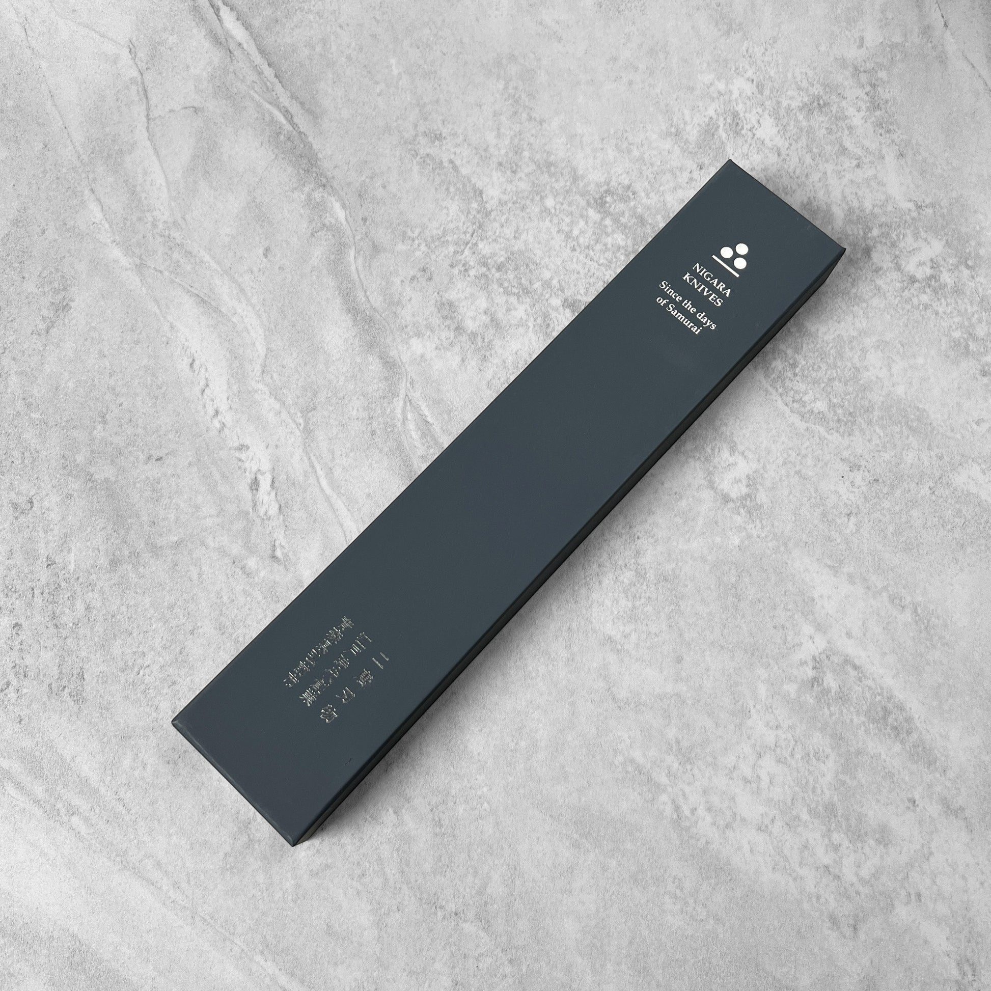Note : Nigara knives tend to be shorter than their stated length because the measurement is from the neck to the tip, instead of the edge length. This feature is also typical of Sakai-made knives.