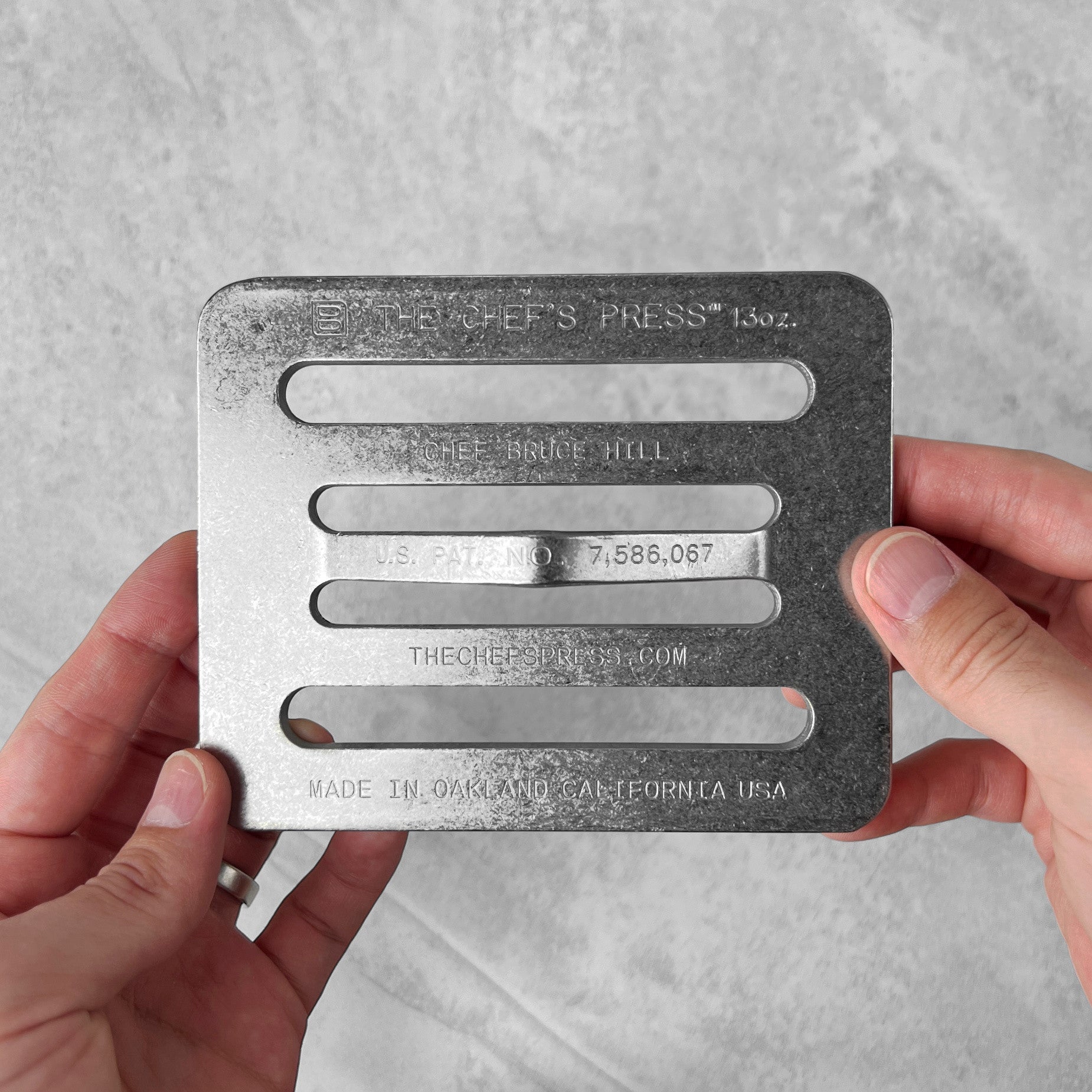 The Chef’s Press™ was born out of true necessity in the tiny kitchen of Bix Restaurant down a secret alley in San Francisco, where Chef Bruce Hill was at the helm of the stoves. In a small kitchen like that, every second counts. The old cast iron bacon presses used by his cooks trapped steam and were too heavy for many dishes. In 2004, Chef Hill created The Chef’s Press™ – a weight-adjustable tool that allows food to cook 20-30% faster and is vented to release moisture, yielding better results with greater ease.