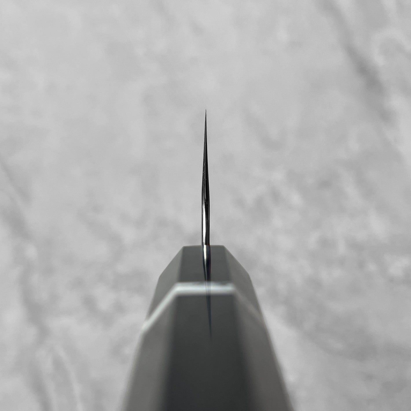 The Yoshimi Kato “Hyo” SG2 Tsuchime series is a refined expression of cutting performance, built around subtle detail rather than show. This latest line showcases his trademark extremely thin taper and immaculate fit and finish - qualities that make these knives effortless, precise, and deeply satisfying to use.